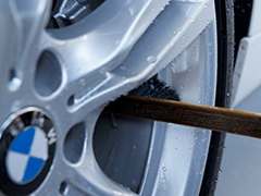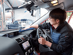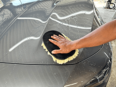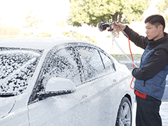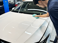 不純物を取り除いた純水洗車を行なうことで、ウォータースポットを作らずキレイに仕上がります。不純物を含まない純水洗車は、拭き上げ時にキズを付けること無く透明感のある仕上がりに。